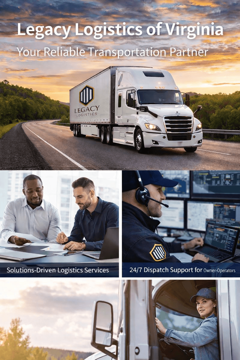 As a trusted transportation partner, Legacy Logistics of Virginia provides dependable transportation solutions designed to meet the needs of brokers and shippers nationwide . Our team offers dependable, safety-focused carrier services designed to move freight efficiently, on time, and with complete transparency.